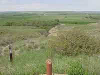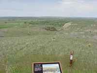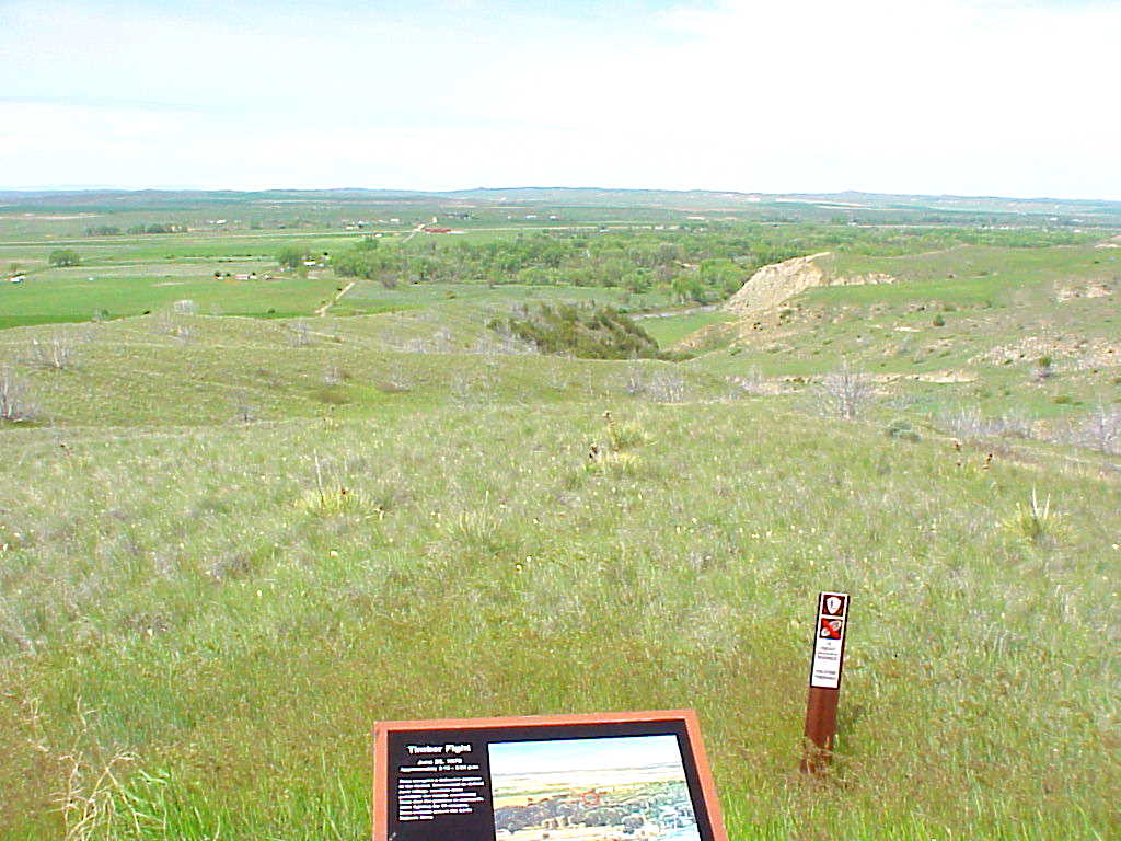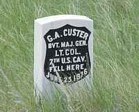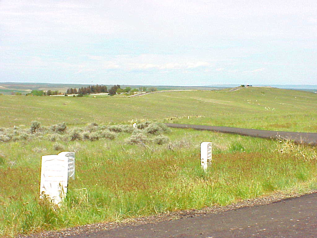 There are two sections to the Little Bighorn Battlefield. They are the Custer Battlefield, and the Reno-Benteen Battlefield. Most people do not know it, but, a few miles of land between these two areas are private property. ![]() "This area was occupied by Troops A, B, D, G, H, K, and M. 7th U.S. Cavalry, and the pack train when they were besieged by the Sioux Indians June 25th and 26th, 1876." This is in the Reno-Benteen Battlefield section of the park. |