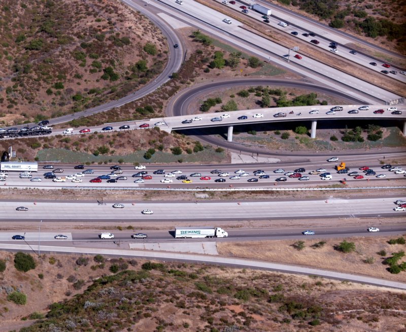 This is I-15 and SR-52 looking southeast. The northbound 15 lanes are backed up to Aero Drive.