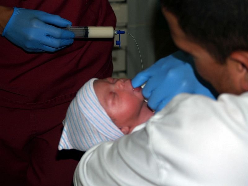 Vincent is feeding her. Note the tiny tube attached to his right finger. This is to get the baby used to feeding off of something about the same size as a nipple.