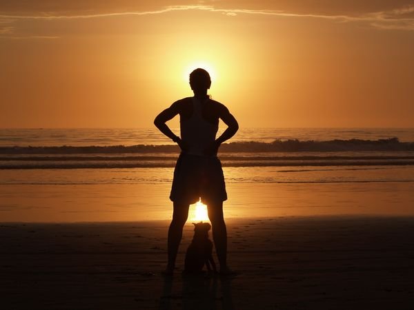 Dayle Webber and the sunset on San Elijo beach in Cardiff-by-the-Sea, California. September 2, 2007