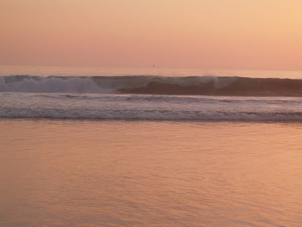 The sunset and an offshore bird on San Elijo beach in Cardiff-by-the-Sea, California - September 2, 2007