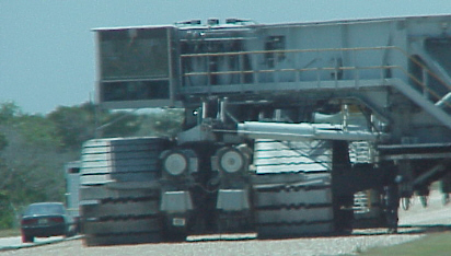 The shuttle was moved to Pad 39A by means of the "crawler." At full speed, it moves at about 1 mile per hour when it is carrying the shuttle. It zips along at a speedy 2 mph without any cargo.