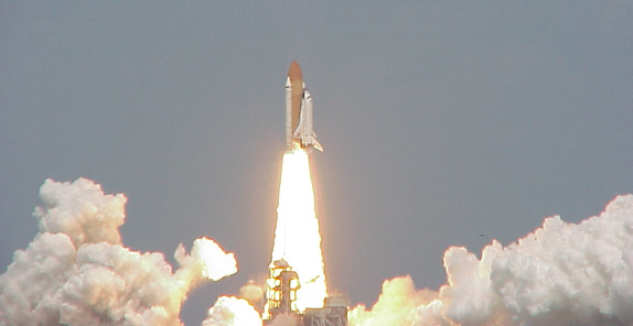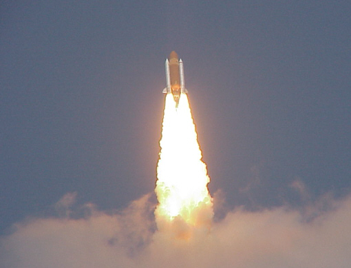 I was surprised by how fast the shuttle lifted off. Once it cleared the tower, it rapidly picked up speed. The flames were very bright. I had to squint to look at them directly. The roar of the engines was very loud, and you could feel the vibration and heat at the press viewing area. We quickly lost sight of the shuttle because of some clouds overhead.