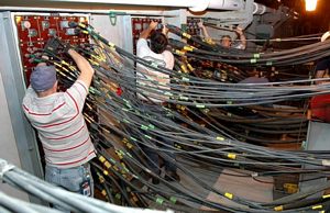 Detailed look at some of the wiring which connects the shuttle to the tower. NASA photo
