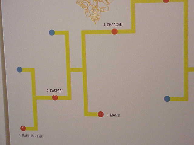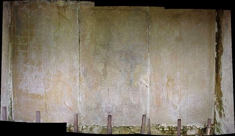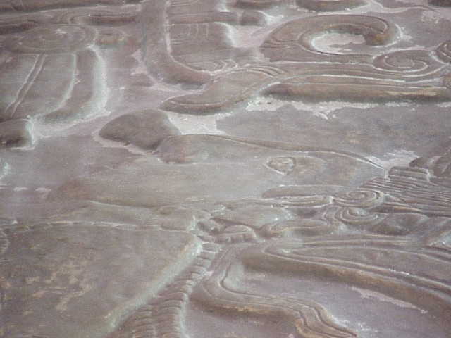 Up the hill from the Temple of the Sun, and within earshot of the Rio Otolum, are several small buildings. This is a reconstruction of one of the panels in one of them.