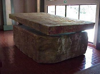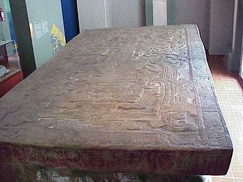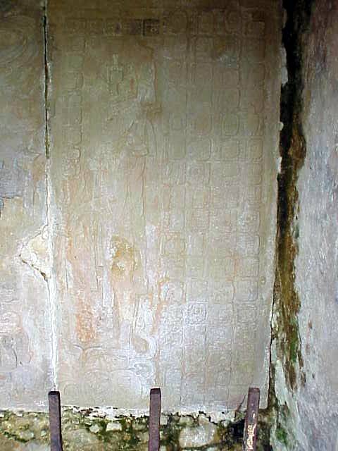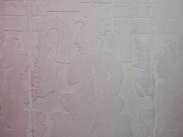This is a relief at the top of Temple XIV. Some experts say this depicts Pacal in the underworld with his mother.