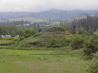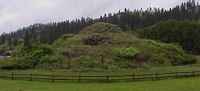 A sign in English and phonetic Nez Perce at the Nez Perce National Historic Park (East Kamiah Site). ![]() Near the small town of Kamiah is a special site for the Nez. Tradition says (and I paraphrase greatly) that Coyote noticed that a great beast was eating up all of the animals of the world. He intentionally got himself caught by the beat, who then ate him. Inside the beast, Coyote met a bear who growled at him. Coyote kicked him in the nose. That is why bears have flat noses. Coyote then met a snake who hissed at him. Coyote stepped on the snake's head. This is why snakes have flat heads. Using his hidden tools, Coyote started a fire inside the beast. He also used his knife to start cutting a way out of the beast. Eventually, the beast died, and the animals escaped. Coyote continued to cut up the beast. He cast aside pieces of the beast into the mountains around him. Wherever a piece landed, a tribe was created, such as the Yakama. After he had finished cutting up the beast, and spread its remains, an animal asked Coyote if he was going to create some people to live in the valley were the fight had occurred. All that was left of the beast was its heart. Coyote reached into the heart, and grabbed a piece. He shook it around and wherever the blood landed, the Nee-me-poo sprang up. This is how the Nee-me-poo came to be. The beast's heart can still be seen. |