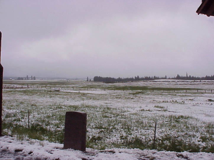 ![]() Fort Fizzle sign. The white streaks are snow. Unfortunately, the pictures I took of the surrounding landscape did not come out. It was easy to see how the Nez Perce were able to circumvent the soldiers' "fort" here. Click here to see the NPS page on this location |