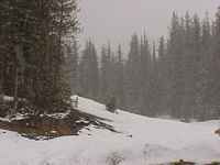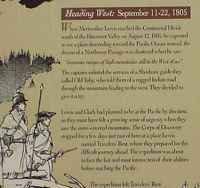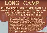 ![]() It was a bit snowy at the Lolo Pass at 5,233 feet elevation (where Highway 12 passes from Idaho to Montana). "The Lewis and Clark party crossed this pass September 13, 1805, westbound for the Pacific after a long detour from the south. From the headwaters of the Missouri, they had crossed the mountains to the Salmon. Finding that river impassable, they traded for packhorses, hired an Indian guide and came north to an Indian trail across the mountains here. Tired and ill-fed, the men had a hard struggle in early snow along the steep ridges which the trail followed for most of its 125-mile course west to the Clearwater River." |