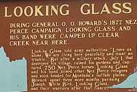 ![]() "During General O.O. Howard's 1887 Nez Perce campaign, Looking Glass and his band were camped up Clear Creek near here. Looking Glass told Army authorities: Leave us alone. We are living here peacefully and want no trouble. But after a July 1 military attack that destroyed his village, ruined his gardens and captured 750 Nez Perce horses, Looking Glass and his band joined other Nez Perce refugees and soon headed for Montana's buffalo plains. Howard spent three more months pursuing Joseph, White Bird, Looking Glass and their warriors after that fiasco." |