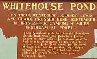 ![]() Whitehouse Pond - "On their westbound journey, Lewis and Clark crossed here, September 15, 1805, after camping four miles upstream at Powell. Their Shoshoni guide had brought them down an old trail from Lolo Pass to a Lochsa fishery he knew about. To continue west, he had to take them north up this ridge to rejoin their Lolo Trail route. Indian travel through here had to go along high ridges because Lochsa Canyon had too many cliffs and gorges to provide a good horseback route." |